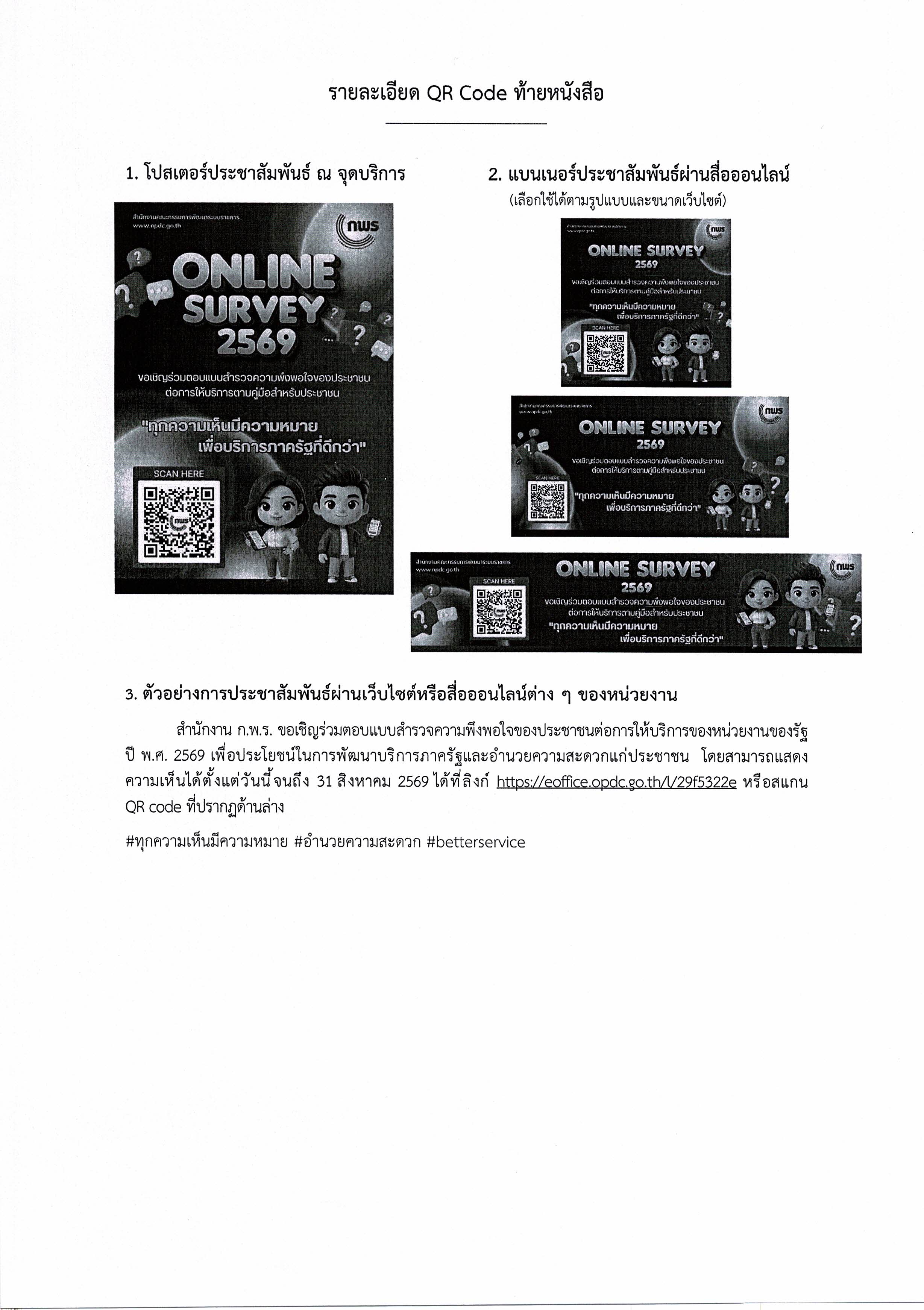 ขอความอนุเคราะห์ประชาสัมพันธ์การให้บริการผ่านช่องทางออนไลน์ ONLINE SURVER 2569