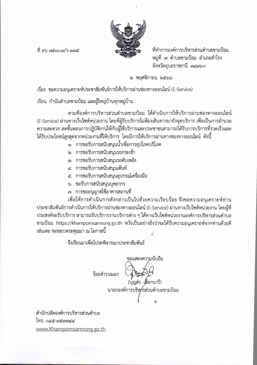 ขอความอนุเคราะห์ประชาสัมพันธ์การให้บริการผ่านช่องทางออนไลน์ ONLINE SURVER 2569
